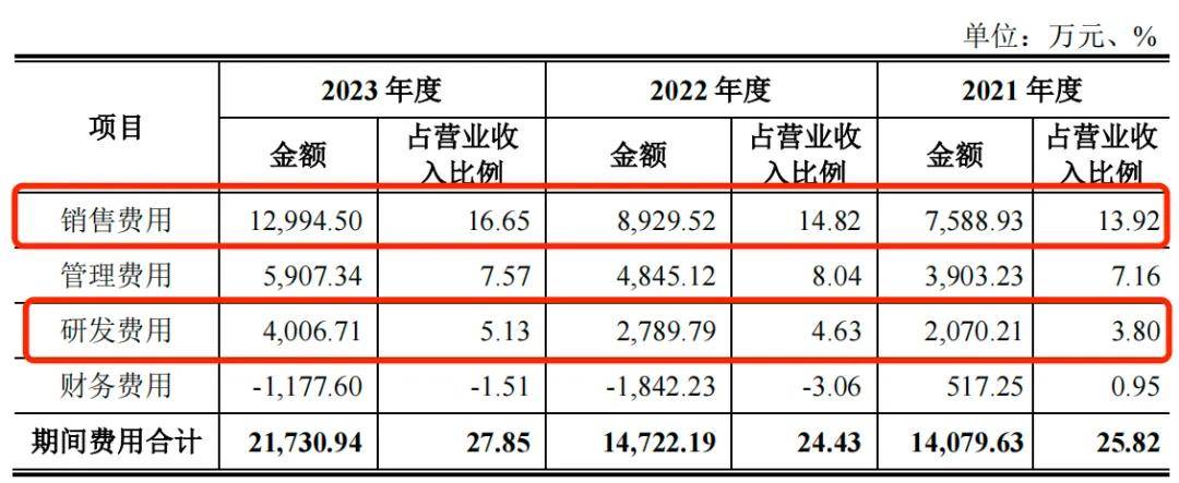 從研發費用來看,報告期內,愛迪特的研發費用分別為2070.21萬元、2789.79萬元和4006.71萬元,各期研發費用率分別為3.80%、4.63%和5.13%。