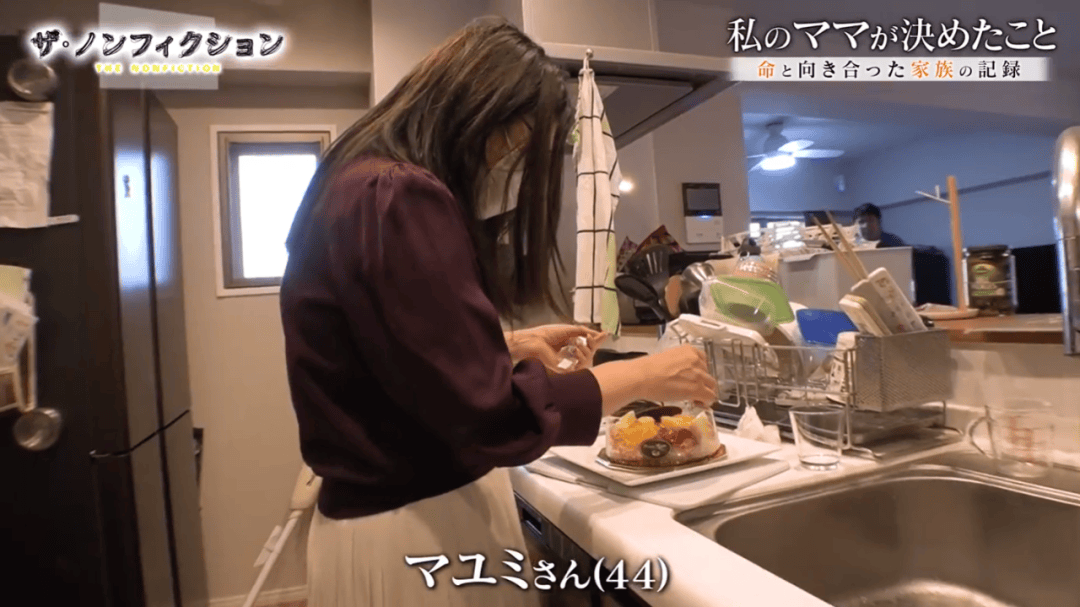 由於癌細胞的擴散,除了滿頭的腫瘤之外,真由美的左眼已經幾乎失明,平衡感也明顯下降,因此,她沒辦法像往常一樣利落地做飯,廚房總是一片狼藉。
