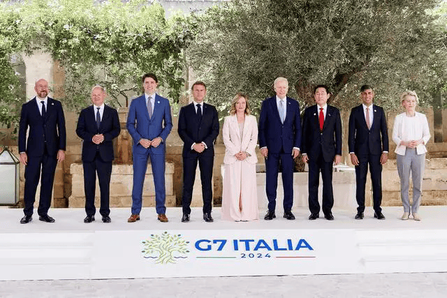 2024年6月13日至15日,美國、歐盟(由歐盟委員會主席代表)、法國、英國、加拿大等國的領導人齊聚意大利南部普利亞地區的一座豪華度假村,參加一年一度的G7領導人峯會。今年的G7峯會註定不同尋常。參會的七國領導人各懷鬼胎,揹負着各自國內政治風波和選舉壓力,帶着煩惱和愁緒前來開會。人來了,心卻忘在家裏。