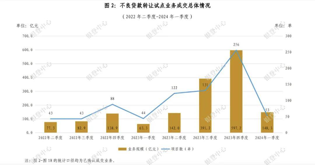 據銀登中心此前披露的《2023年四季度不良貸款轉讓試點業務統計》報告,從2023年第三季度開始,金融機構不良貸款轉讓的業務規模和成交單數均出現爆發式上漲。