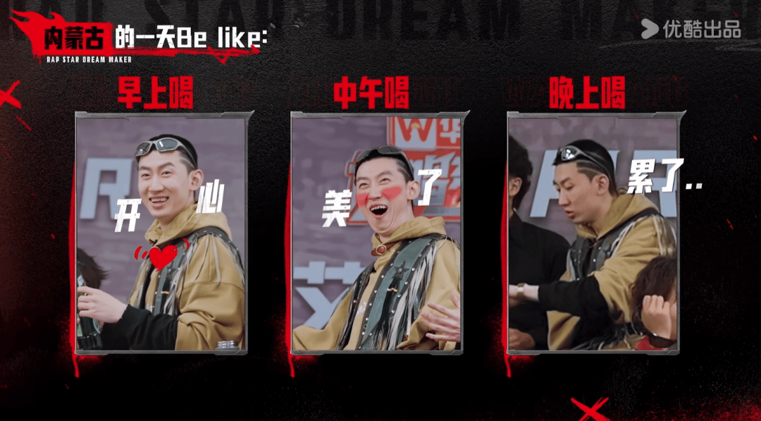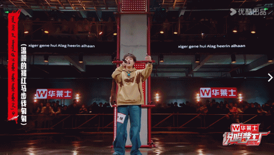 而這種豪邁熱情的特質也被融進曲風,伊赫用蒙語方言唱的hook部分(rap中最具旋律性的部分),更是一下把人拉到大草原,差點被彈幕扭送隔壁《歌手》現場的程度。