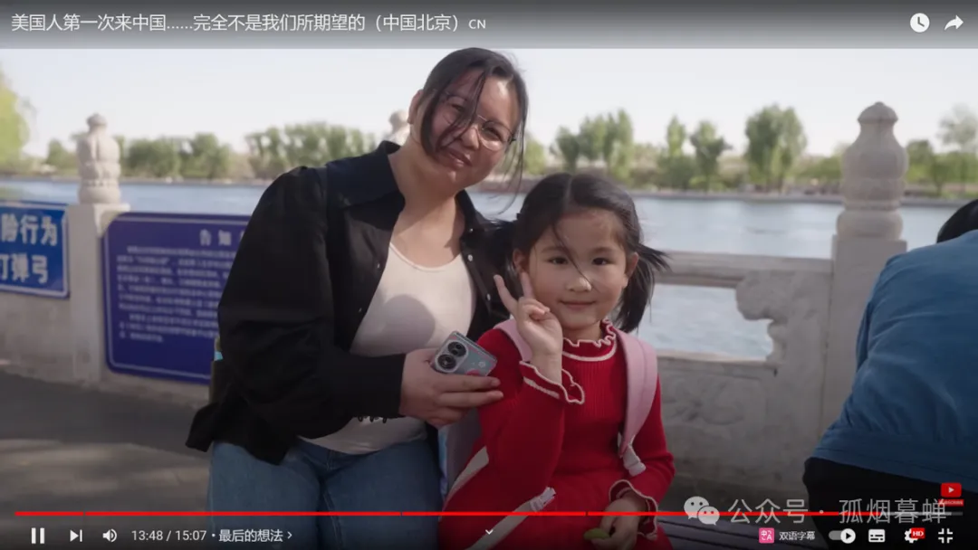 我在這裏給大家複述的,是一位名叫山姆(Sammy)的美國婦女在她近期上傳到YouTube上的一段視頻節目中所説的原話。山姆和她老公湯姆(Tommy)都是在YouTube上小有名氣的旅遊博主,乘着咱們國家144小時過境免籤政策的東風之便,他們倆口子最近來了趟北京旅遊。去了景山公園、吃了北京烤鴨,遊覽了鼓樓和鐘樓,還在京城裏體驗了一把當衚衕串子的樂趣。
