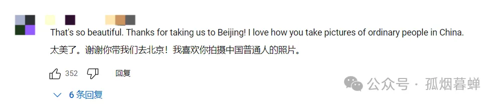 “家人們,你們好呀!謝謝你們帶我去北京探險。那兒看起來真的乾淨和很有趣,人都很友好,東西也好吃。希望你們再出一期 YouTube視頻。愛來自澳大利亞。”