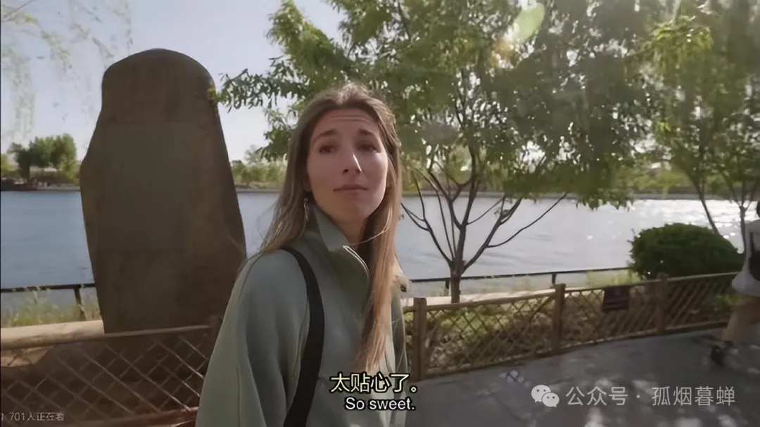 “這個環境,剛剛真是有點小緊張(This setting, slightly stressful situation just now),我把手機和充電器落在那邊的公園長椅上了(l left my phone and mycharger sitting on a bench way down there),我們都走到閣樓這邊了,這才突然想起來(And we’re already here at the temple and l was like),糟了(oh my gosh),我把我手機落長椅上了( l left my phone on that bench)。我想起來這事的時候已經過去快10分鐘了(It had been like 10 minutes),我於是趕緊跑回去,結果看到,有羣姑娘正幫我看着我的手機,等着物歸原主呢(Ran down and some girl was keeping an eye on it until l came back for it)。家人們,真的,太暖心了(So sweet)。”