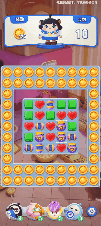 在有些特殊關卡,比如作為獎勵關卡出現的金幣關,遊戲甚至會只出現三種顏色以便讓玩家合成出更多道具,打出更多連鎖,切實地體會到獎勵關卡帶來的快感。