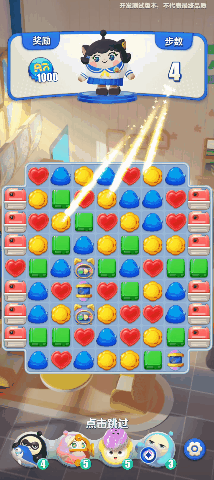 相比於傳統三消,這些道具的威力有明顯加大,比如炸彈的轟炸範圍就設定為3X3,比很多遊戲的菱形範圍更大。同時道具之間還可以組合起來,對棋盤造成更大的消除,比如螺旋槳可以將不同道具帶去隨機地點爆破,效果拔羣。