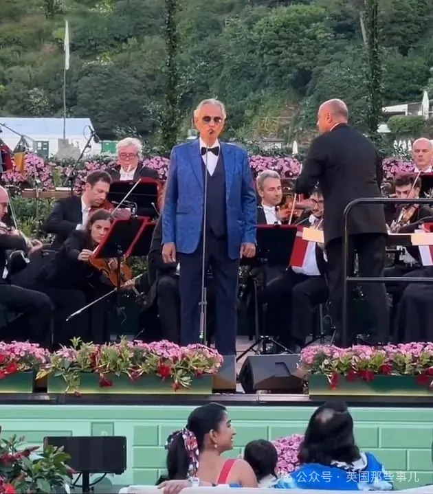 意大利男高音Andrea Bocelli和兒子來到現場父子表演,演唱《情不自禁地墜入愛河》…