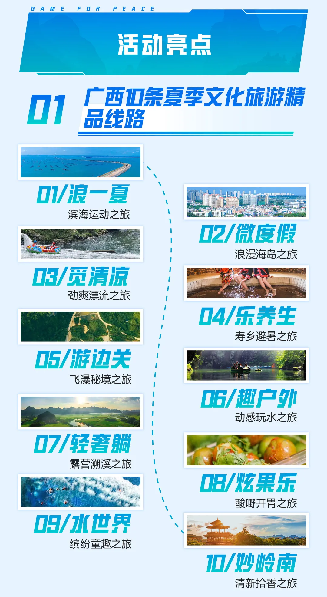 和平精英與廣西文旅的合作,便是“電競+文旅”深度綁定的創新與探索。6月12日,“大吉大利 玩轉廣西”—廣西夏季文化旅遊宣傳推廣暨“和平精英”數字文旅共創啓動儀式在廣西桂林舉行。廣西文旅將攜手騰訊互娛,共同推出“和平精英x廣西數字文旅共創計劃”。