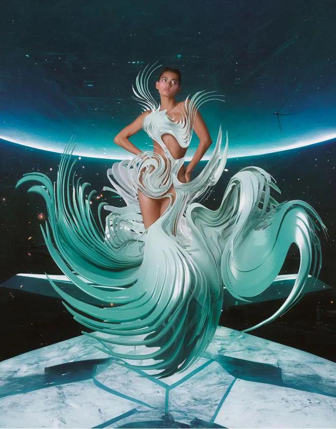 舉個例子,在2024年的微博之夜裏,設計師餘一萌就是應用了數學參數的手段,給眾多女明星設計出了多款搞定數字時裝,如圖: