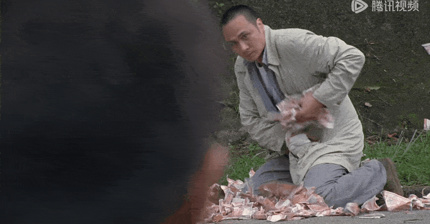 最善惡難分的一幕,便是同事與通緝犯扭打一團,中槍的Mike一邊撿錢,一邊留意動靜。