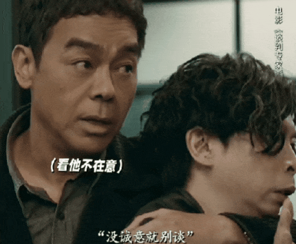 整個人的表演狀態十分鬆弛,彷彿只是在和劉青雲鬥嘴,但眼神裏始終帶着觀察和探究。