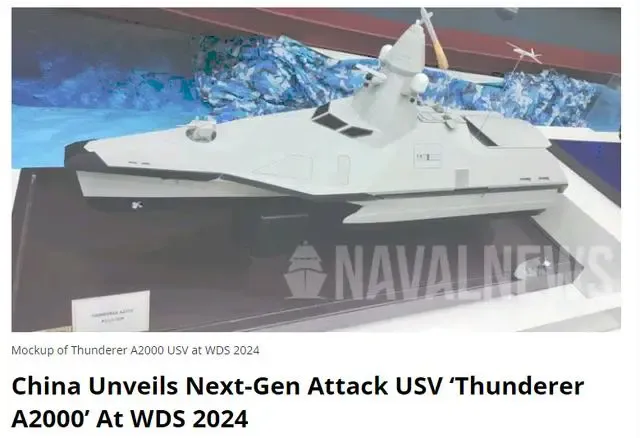 另外在無人作戰裝備方面,就連美國媒體也承認,中國在很多領域與美國並駕齊驅甚至更進一步。例如美軍不久前才測試了無人機與無人艇的協調作戰能力,這是“地獄景觀”戰略的核心技術之一。可中國已經公開展出過出口型“雷霆”A2000無人艇,它的排水量為280噸,配備有可以發射和回收垂直起降的察打一體無人機,以及24單元的巡飛彈,顯示中國早就將無人艇與無人機的協同作戰能力整合完畢,並推出了完整的成熟產品。