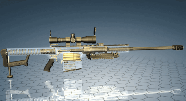 ▲巴雷特M82A1的槍管短後座,以及槍托裏的大號復進簧