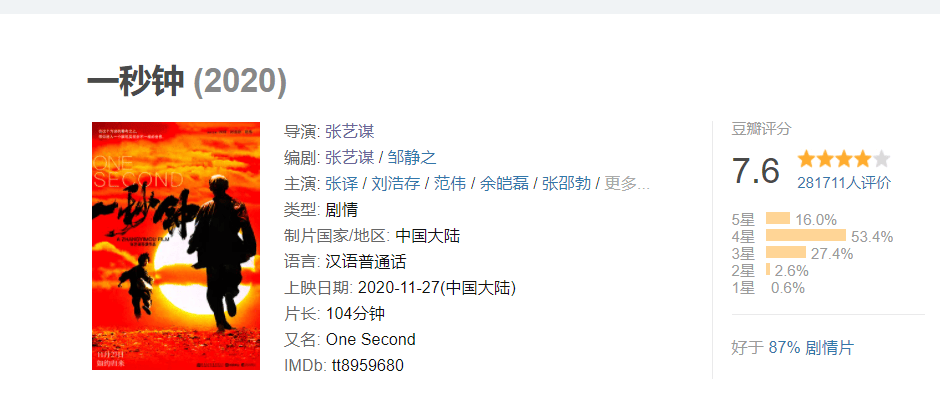 張藝謀00年代和10年拍電影,節奏很慢,平均2年1部,現在20年代還沒過半,他已經上映6部電影,提前完成過去10年工作量了——當然《一秒鐘》還有《堅如磐石》部分創作屬於2019年。