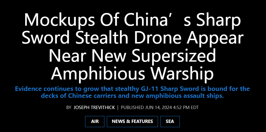 報道還注意到,這些模型距離建造中的中國076型新型兩棲攻擊艦僅有2000米,而且該基地的相關配套設備,包括對放置無人機的鋪裝場地、周圍的圍牆等,也都是2023年秋天才開始的,這與076型兩棲攻擊艦的主要建造工作基本同步,更增加了美媒的猜測——攻擊-11的海軍型是專門為076型兩棲攻擊艦配套研製的,或者説未來它將成為中國海軍航母和最新大型甲板兩棲攻擊艦未來艦載機聯隊的一部分。