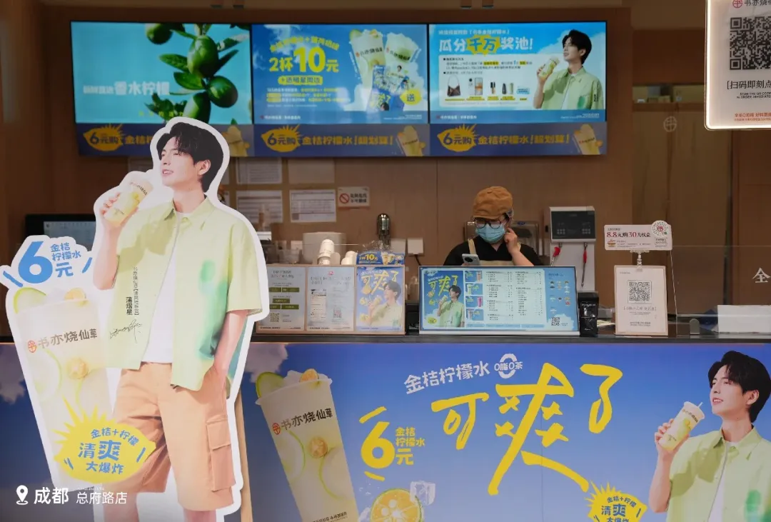 就比如上述提到的,書亦燒仙草今夏推新6元一杯的“金桔檸檬水”,是聯名蒲熠星一起做的。