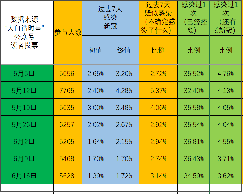 6月16日,7天新增感染比例,初值為1.39%,終值為1.72%,終值數據跟上週基本持平,可以視為暫時止跌。