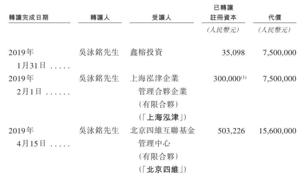 2019年1月至4月,吳泳銘分別向鑫榕投資、上海泓津、北京四維轉讓所持股份,累計套現3060萬元。以此來看,吳泳銘已經獲利2610萬元,投資回報率高達580%。