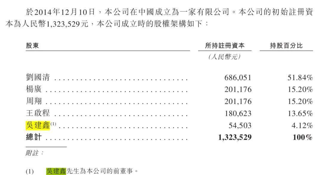 2014年12月,劉國清、楊廣、周翔、王啓程和吳建鑫五人共同創立了佑駕創新,註冊資本132.35萬元。其中,吳建鑫於2023年6月辭任執行董事一職。