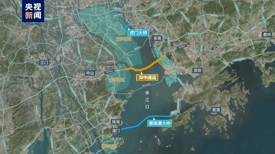 在此之前,儘管有關珠三角修路架橋的討論持續多年,但在珠江口“黃金內灣”跨海通道中,北有虎門大橋連接廣州、東莞,南有港珠澳大橋將香港、珠海和澳門加以聯通,中間則仍是“空白”。