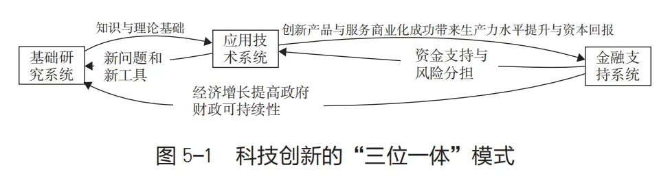 **基礎科研、應用技術、金融支持三個條件必須互相配合,缺一不可。**正是因為這三者之間的緊密關聯,**在西方,人們把技術創新過程稱為“國家、市場和金融”三者之間的一場持續“遊戲”,**即國家負責基礎研究,市場負責應用技術,而金融負責基礎研究到應用技術的轉化。缺失任何一個條件,不僅會使技術創新很難進入一個良性循環,實現持續的進步,更會使得技術創新在某個節點戛然而止。