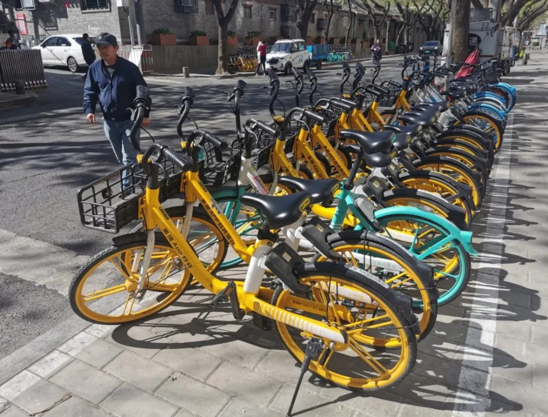 在北京市西城區佟麟閣路,共享單車擺放有序