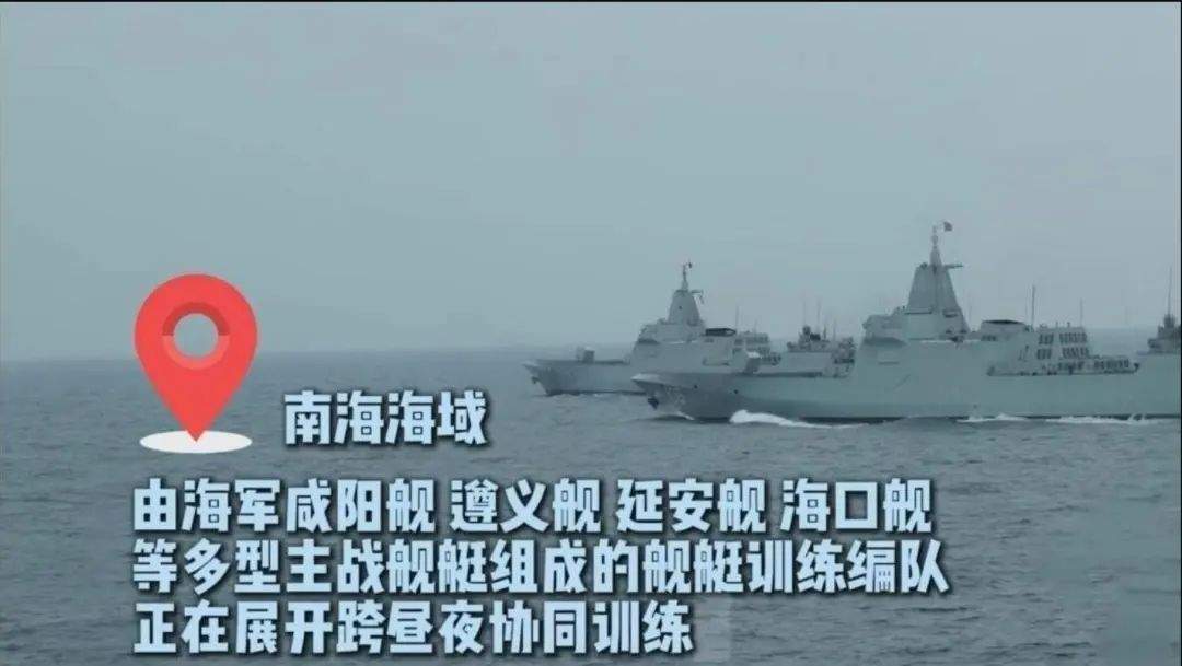 據央視報道,解放軍南部戰區海軍某驅逐艦支隊近日在我國南海組織了一場為期6天的跨晝夜實戰化演練,南海艦隊出動了三艘055大驅(106延安艦、107遵義艦、108咸陽艦),另外還有一艘052C型驅逐艦“海口”艦。