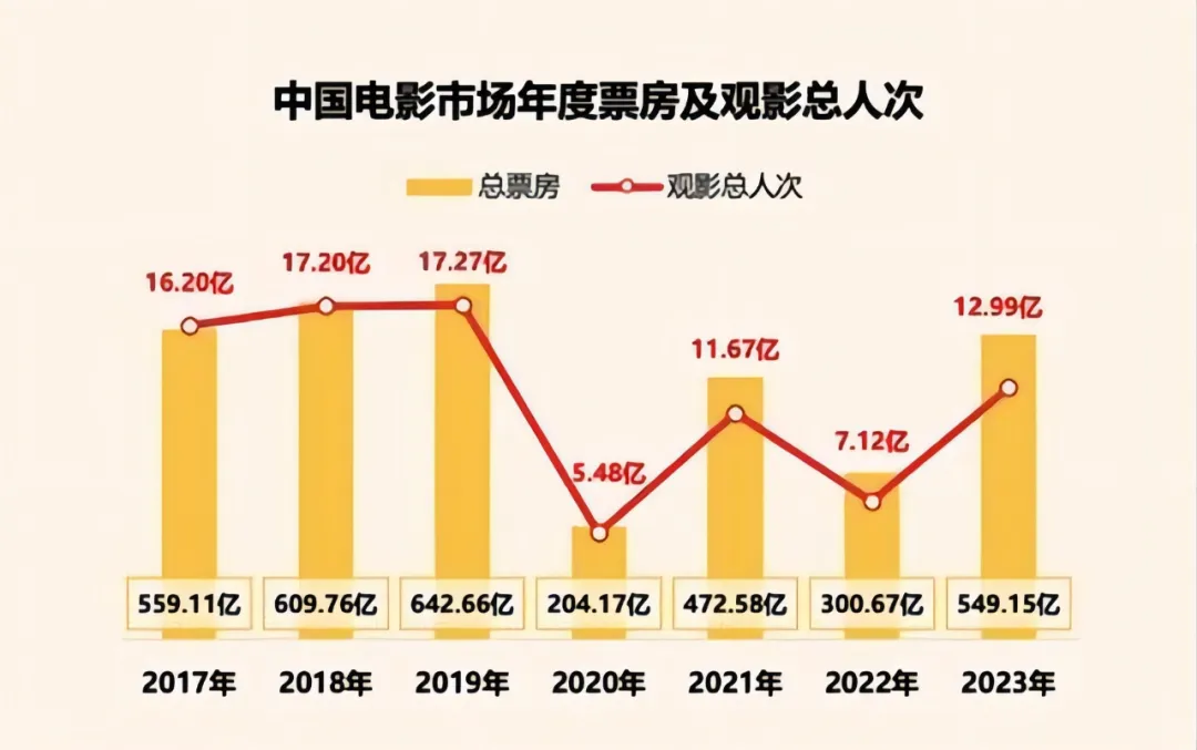 中國電影市場年度票房及觀影總人次圖源:《2023年中國電影市場年度盤點》