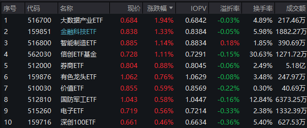 熱門ETF方面,金融科技ETF(159851)全天紅盤運行,場內價格收漲1.33%,收復20日均線,全天成交額超1800萬元,較上一交易日小幅放量。