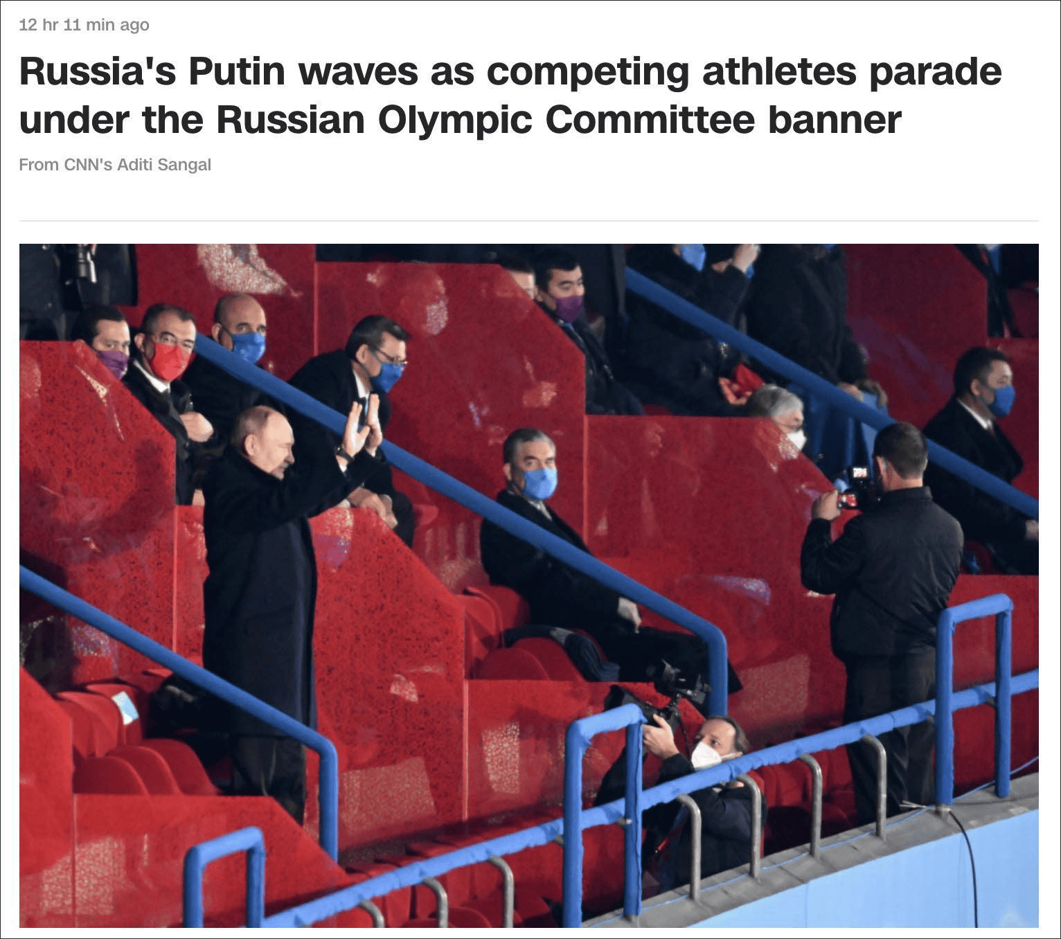 然而隨着第二天開幕式的開始,我看到普京一個人孤零零的坐在俄羅斯運動員坐席上而非主席台上(當然這次冬奧會主席台除了國際奧委會主席巴赫外,就沒有其他外國領導在主席台席位,不知道是不是刻意為了不讓普京難過),我猜測應該是沒談好某事,而普京在北京只待了9小時就回國了。
