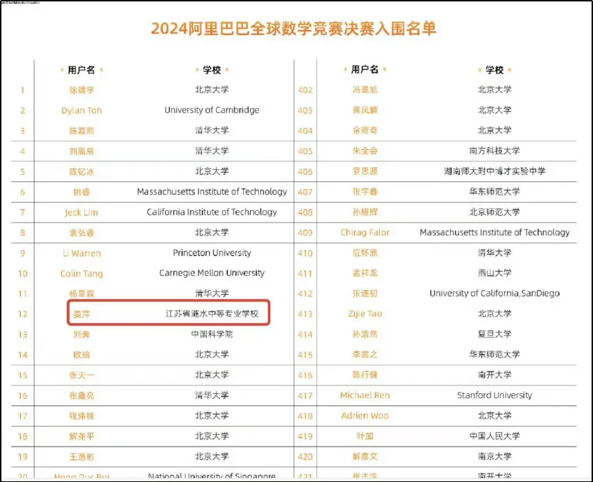 可以看到一眾清華、北大、劍橋、麻省理工中間,有一位漣水中專格外扎眼。