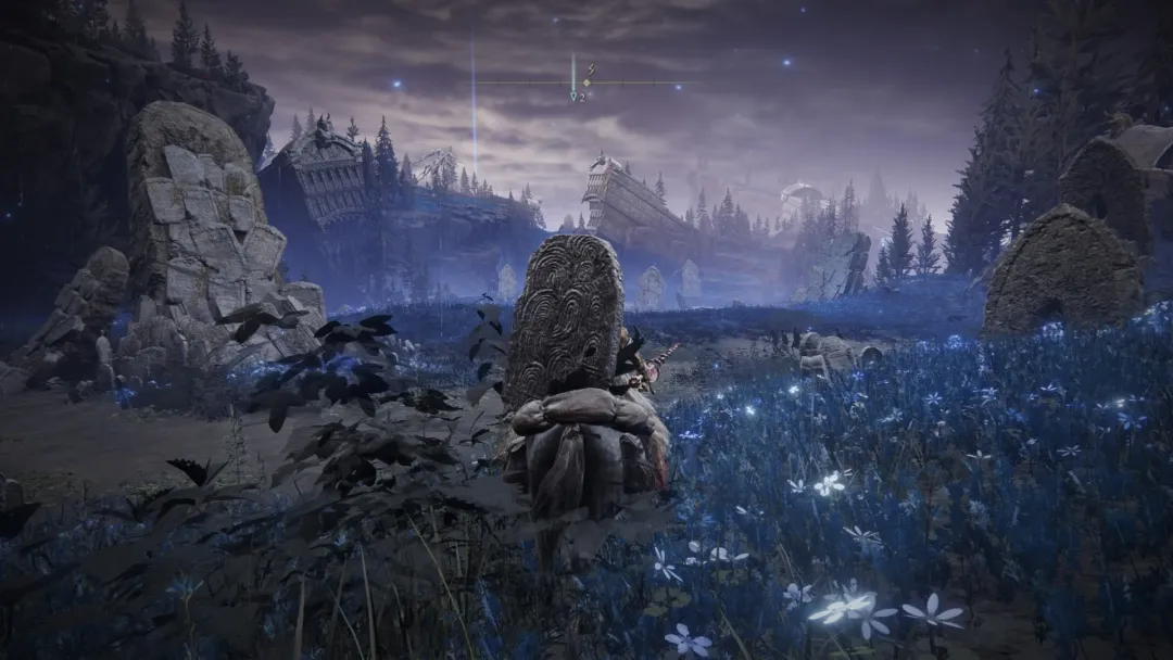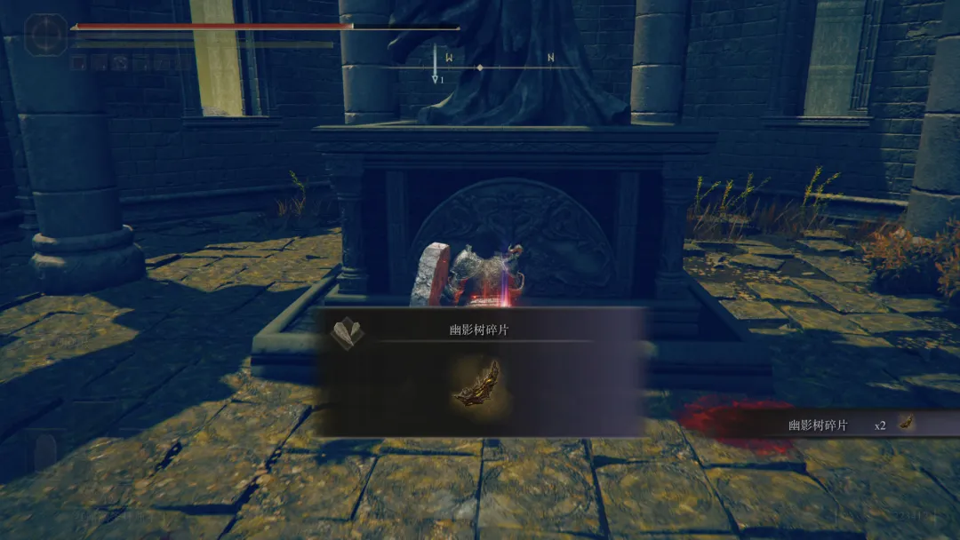 幽影樹碎片散落在地圖各處,其位置與形式和本篇的“黃金種子”相似,不過作用上更像是《只狼》的念珠收集。**這項戰鬥力修正機制,某種意義上也為將角色完全養成的玩家提供了一定的遊戲體驗。**誰也不想看到自己全拉滿的角色進入霧門後,一刀就把BOSS秒掉的結果吧。