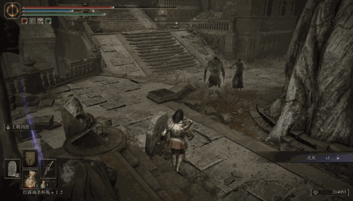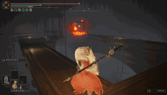 這也意味着DLC的敵人設計,會更靈活、敏捷。這也是為什麼我覺得在DLC開荒時,使用遠程法師會稍微輕鬆一點的原因。部分敵人一旦開始戰鬥,其位置往往讓你難以近身。我開荒時使用的“鮮血旋流”盾戳流派,經常貼着BOSS狂戳也戳不到,令人紅温。而換上帶有投擲效果的武器之後,推圖流程中的許多敵人,包括部分BOSS都變成了簡單難度。**這種鼓勵遠程進攻的設計可能也是DLC中的一大變化,**讓死抱着古典魂那種“架盾二人轉”打法的玩家扭轉思路,也許時代真的變了。