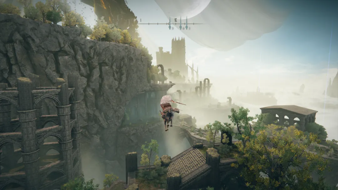 在《黃金樹之影》的探索體驗中,令人滿意的地方在於地圖設計。儘管地圖的面積似乎只比“寧姆格福”區域大一圈(來自官方的説法),但《黃金樹之影》的地圖採用了多層、立體設計,極具縱深感。