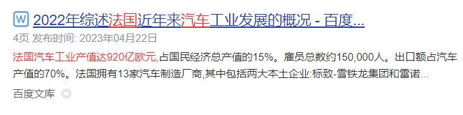法國的工業GDP為2700億,其中汽車就佔900億,汽車產業佔工業GDP的33%。