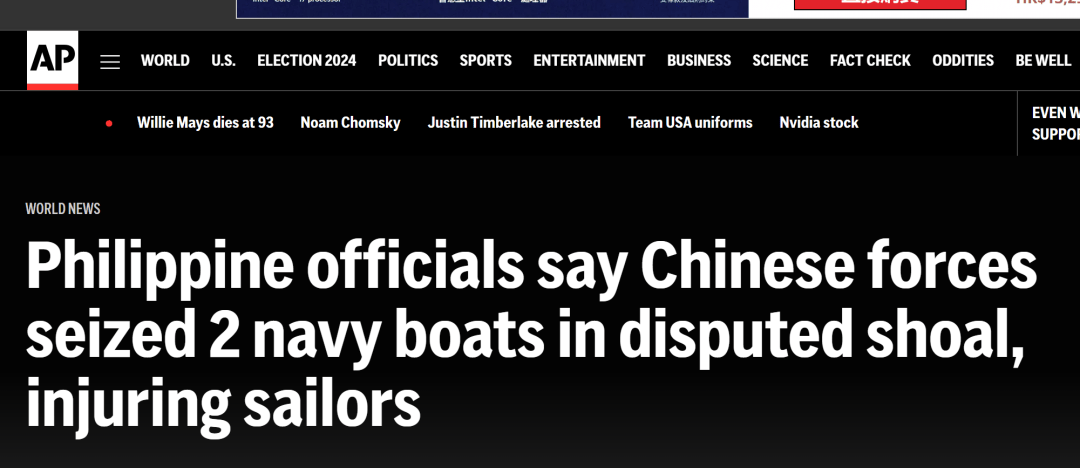 3)中國海警與中國其他政府部門一樣,在發佈信息時,非常嚴謹,“字很少,但是,信息量一點都不少”。尤其是第三條微博裏説的,“中國海警對菲船艇依法採取警告攔阻、登臨檢查、強制驅離等管制措施”,畫面感很強,留給網民的想象空間很大。果然,美聯社6月18日刊發了一篇長篇報道,標題就是——菲律賓官員説,中國海警在仁愛礁附近沒收了(seize)兩艘菲律賓海軍的船隻,菲律賓海軍人員受傷。