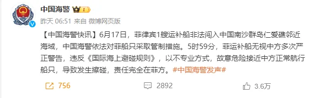 先是菲律賓官方吹牛X:我們又要去仁愛礁送補給了啊,我們背後有美國,哇哇哇,我們很厲害的!