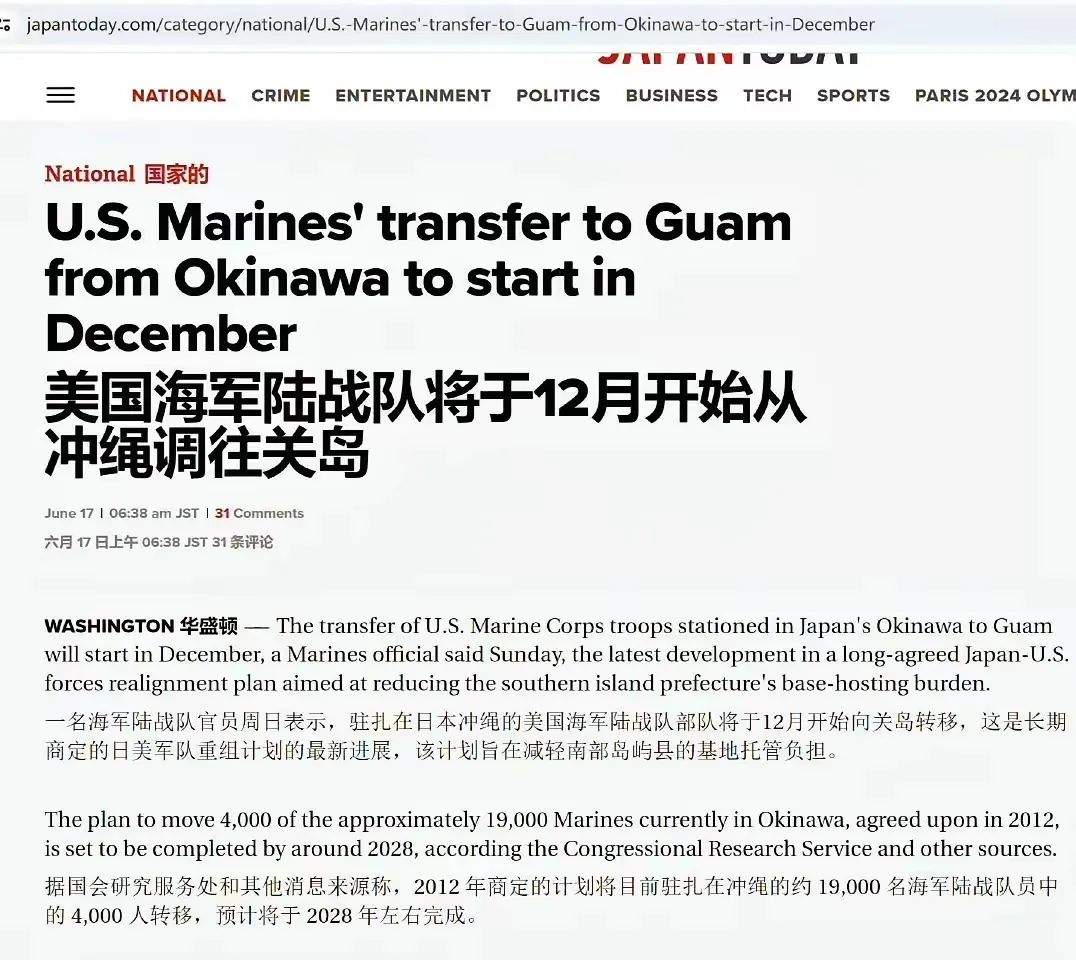 二是美海軍陸戰隊宣佈,將於12月開始從沖繩調往關島。這算啥?**事還沒發生,大哥就先往後撤了啊!**你説小弟們怎麼想?