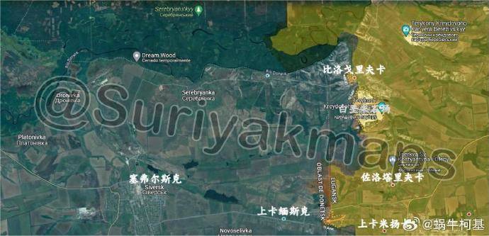 1、塞弗爾斯克以東:俄羅斯軍隊繼續向比洛戈裏夫卡推進,佔領了該地區中心以及南部白堊採石場,然而北部山區仍處於烏克蘭軍隊的控制之下。再往南,俄羅斯軍隊成功控制了上卡緬斯克以東的巨大戰壕,從而可以火力控制該地區的烏克蘭運輸。