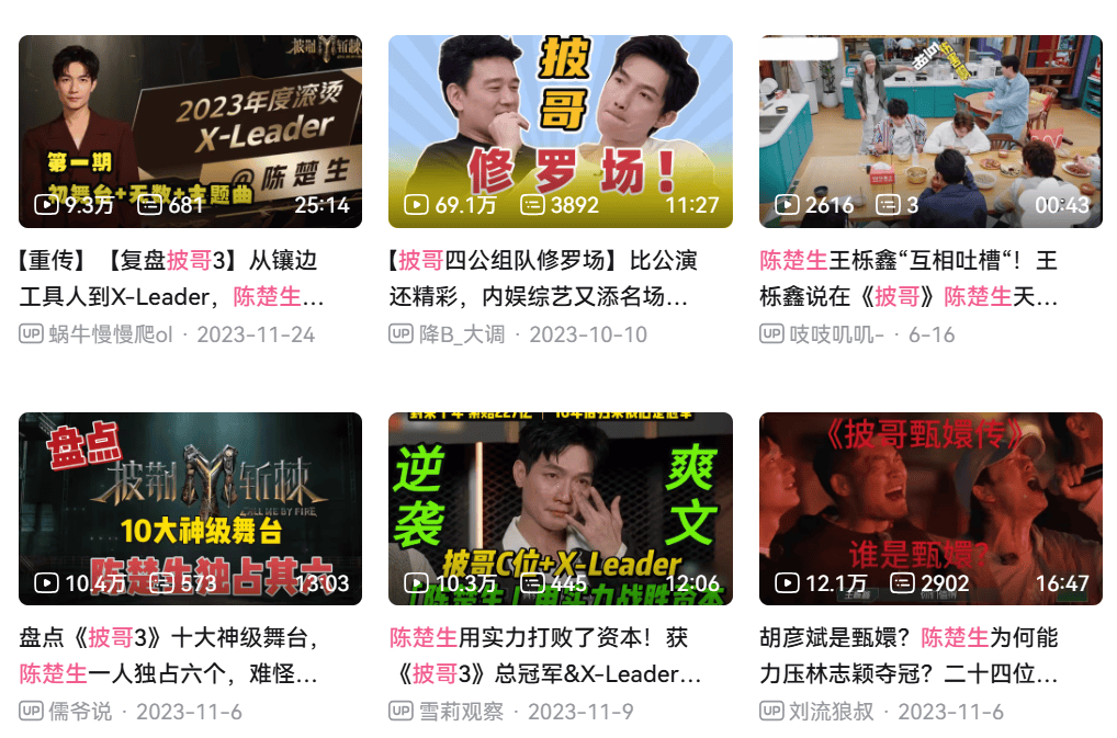 去年的“披哥”裏,陳楚生走出了一條逆襲的路。起初,他所在的部落並不是排名最靠前的一個,他和他的隊伍也經歷了換人、舞台安排不合理、開場前換歌等一系列事件。但隨着一次自發地組隊,此後各類舞台都體現出了他的vocal能力和音樂審美以及舞台功底。不少人也在這時想起,在當年07快男一眾奔放的舞台裏,陳楚生就是那個一開嗓就“修音響”的人。
