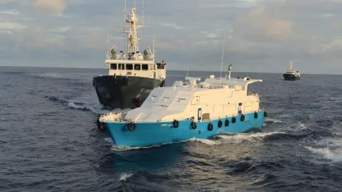 在此之前,菲律賓海警的兩艘海警巡邏船“卡布拉”號和“特里薩·馬格巴努亞”號,就已經在距離菲律賓海岸更近的仙賓礁長期聯排錨泊,以成為兩座“準坐灘“軍艦,而當時給出的理由則是監視並阻止中國在仙賓礁填海造陸。
