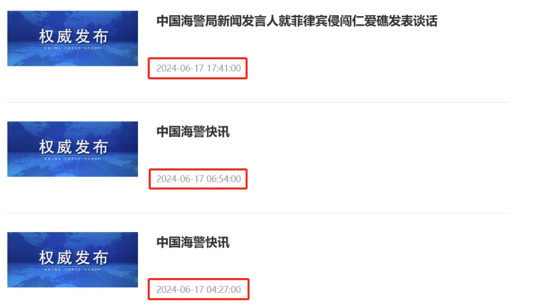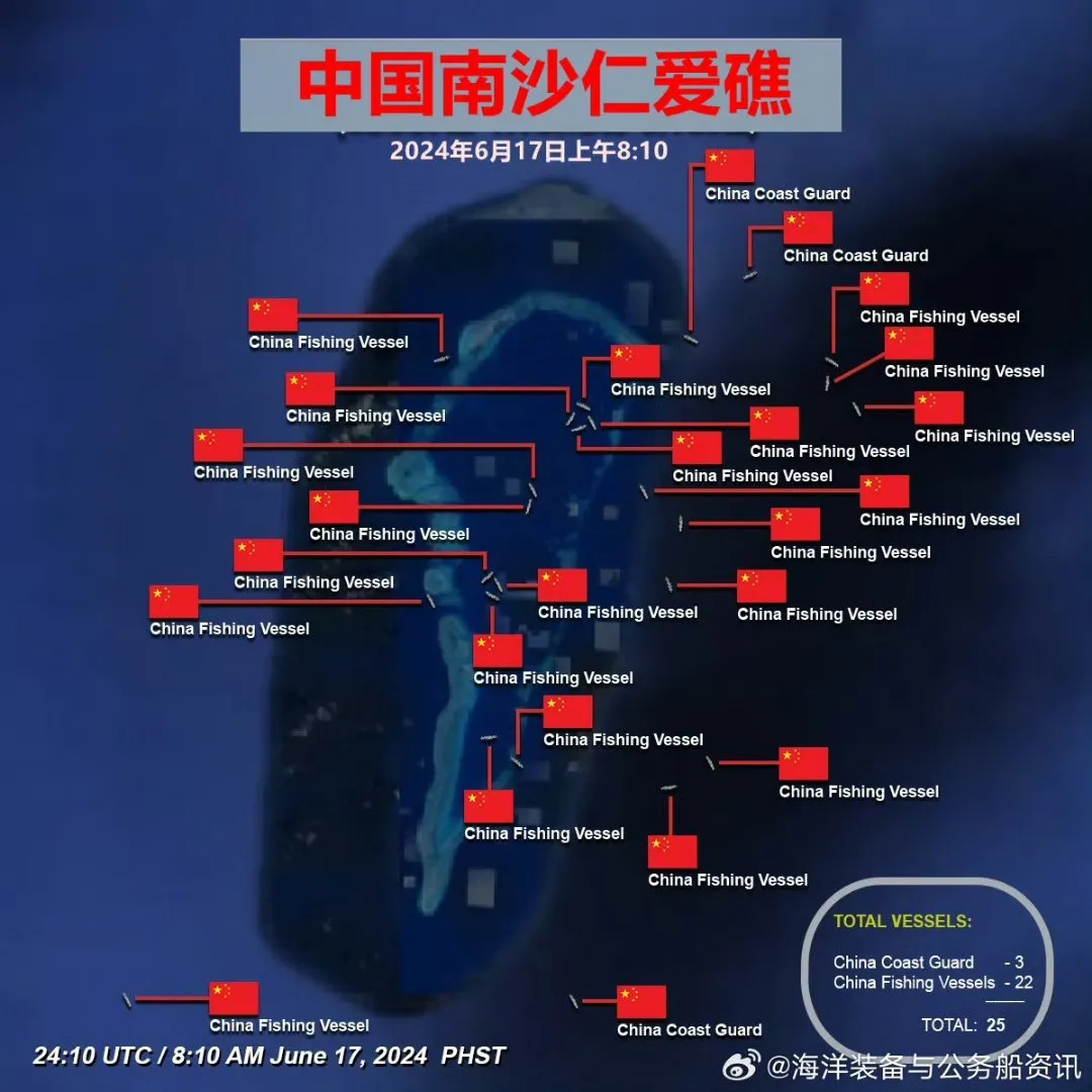 結合中國海警局在6月17日發佈的幾則快訊,可以確定一些官方渠道的消息:一是在凌晨4點半左右,中國海警依法對非法闖入我南沙羣島仁愛礁鄰近海域的菲律賓船隻採取管制措施。