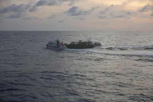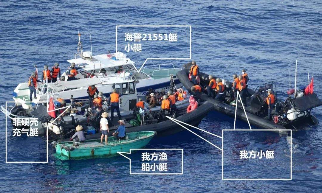 除了沒收了補給、武器,對於菲律賓的”作案交通工具“,中國海警也一併處置了,兩艘剛性充氣艇被拖走後全給扎漏氣了,其餘的幾艘運補小船也被中國海警暫時扣押,到18號才歸還。