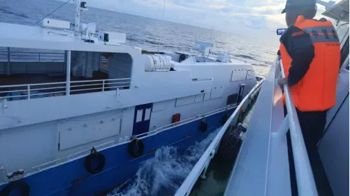 ▲中方海警執法人員登臨檢查菲運補小艇