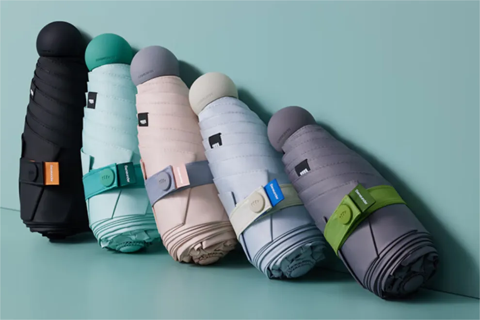 小黑傘上市以來,馬龍死磕顏值,他把傘重壓縮到99克,只有半個蘋果重,比手掌還小,可以放進口袋裏,稱為膠囊傘。