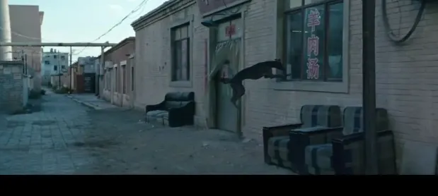 彭于晏飾演的二郎,曾經是西北小鎮特技明星,意外傷人致死。