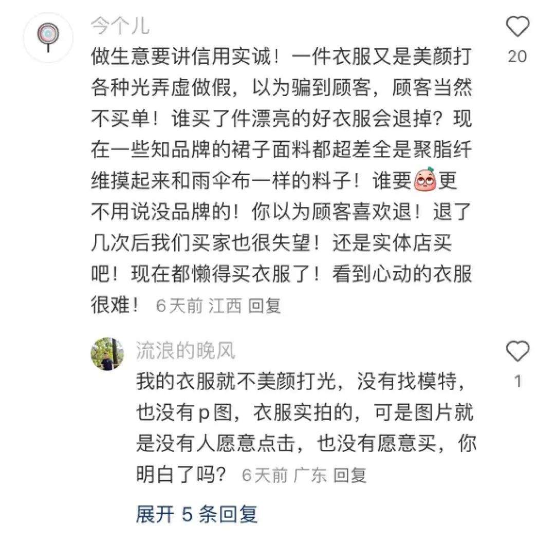 但商家也是有苦説不出:賣出去20件,退回來12件,還有人安慰我説實體店試20件能賣出12件已經很不錯了。