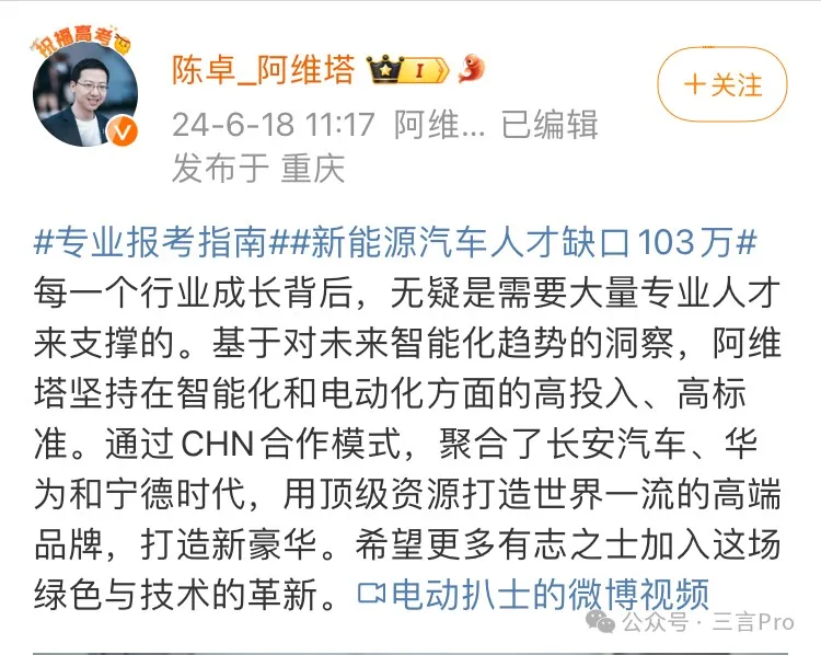 阿維塔科技總裁 陳卓:每個行業成長都需要人才支撐