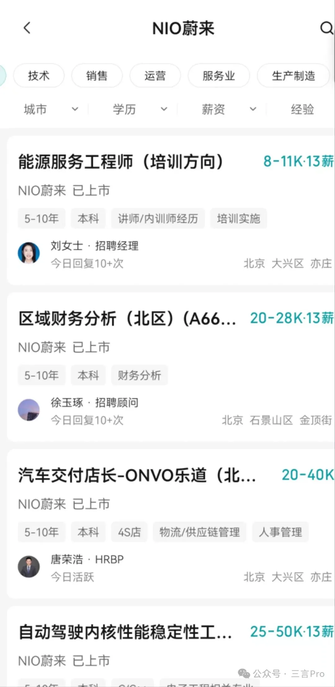 筆者在招聘網站上也發現, 各車企招聘規模並不小。例如蔚來正在招聘的崗位包含技術、銷售、生產製造、市場、產品等十六個類別。