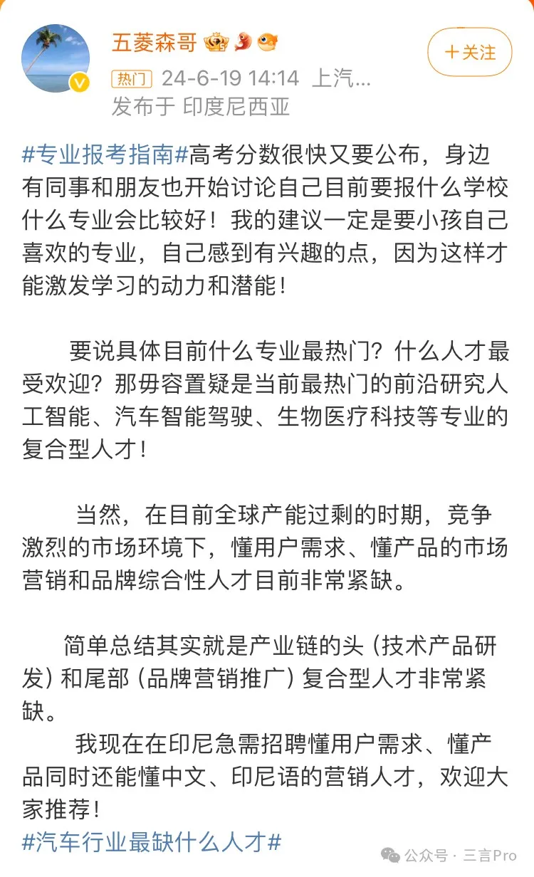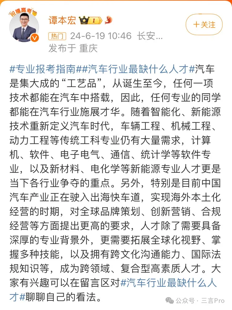 此外,恰逢高考結束,各地高考成績也將陸續出爐,對於正準備選擇專業的考生來説,選擇新能源汽車產業是否合適呢?